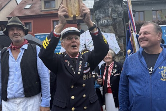 Ten ji uložil v klubovně Vltavanu Davle, kde ji předseda Josef Bílek předal do rukou vrátného Jana Pöschla z Vltavanu Purkarec, který ji s kolegy Josefem Nachlingerem a Jaroslavem Andrlem dovezou až do Prahy, na přístaviště TJ Bohemians, kde vor přečká do čtvrtka, kdy Vltavská štafeta vyvrcholí slavnostním zahájením výstavy VLTAVA slavná & splavná.