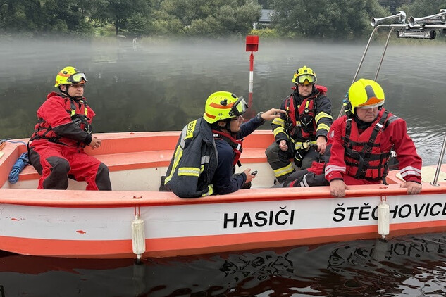 Dovezli tam, společně s kapslí s vodou z vltavských pramenů, hejtmanku Petru Peckovou, poslankyni Věru Kovářovou Železnou a starostku městysu Štěchovice Kateřinu Rožníčkovou, která štafetu předala do rukou starosty městysu Davle Jiřího Prokůpka.