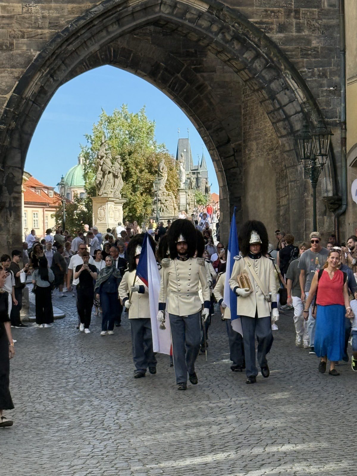 Do Prahy dorazili s početným doprovodem v historických oděvech a pod dohledem plavidla Státní plavební správy o den dříve. Vypluli z Davle, kde jim vltavskou štafetu předal předseda tamního vltavanského spolku Jiří Bílek, a zhruba dvacetikilometrovou trasu po Vltavě, která vedla přes dvě plavební komory, v přehradě Vrané a zdymadle Modřany, zdolali i s pauzou na občerstvení za zhruba sedm hodin.